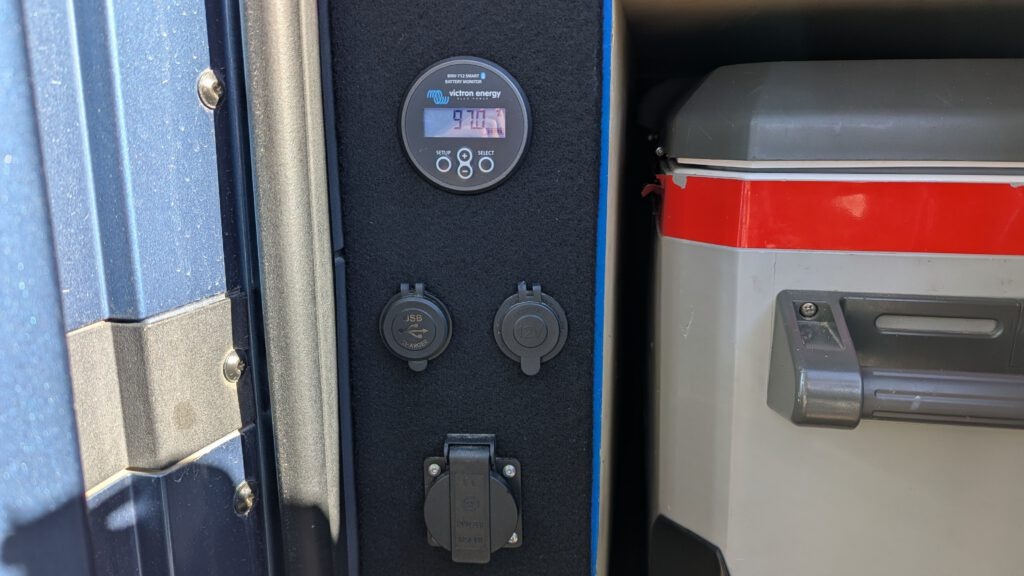 A 40l Engel fridge/freezer is mounted on a slideout in the trunk. On the other side you have a big drawer.